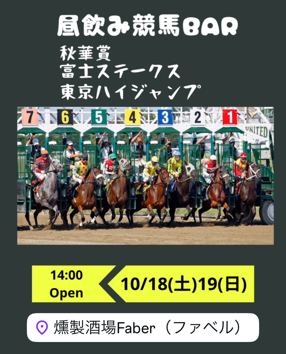10/18(土)19(日)は秋華賞他昼飲み競馬Bar