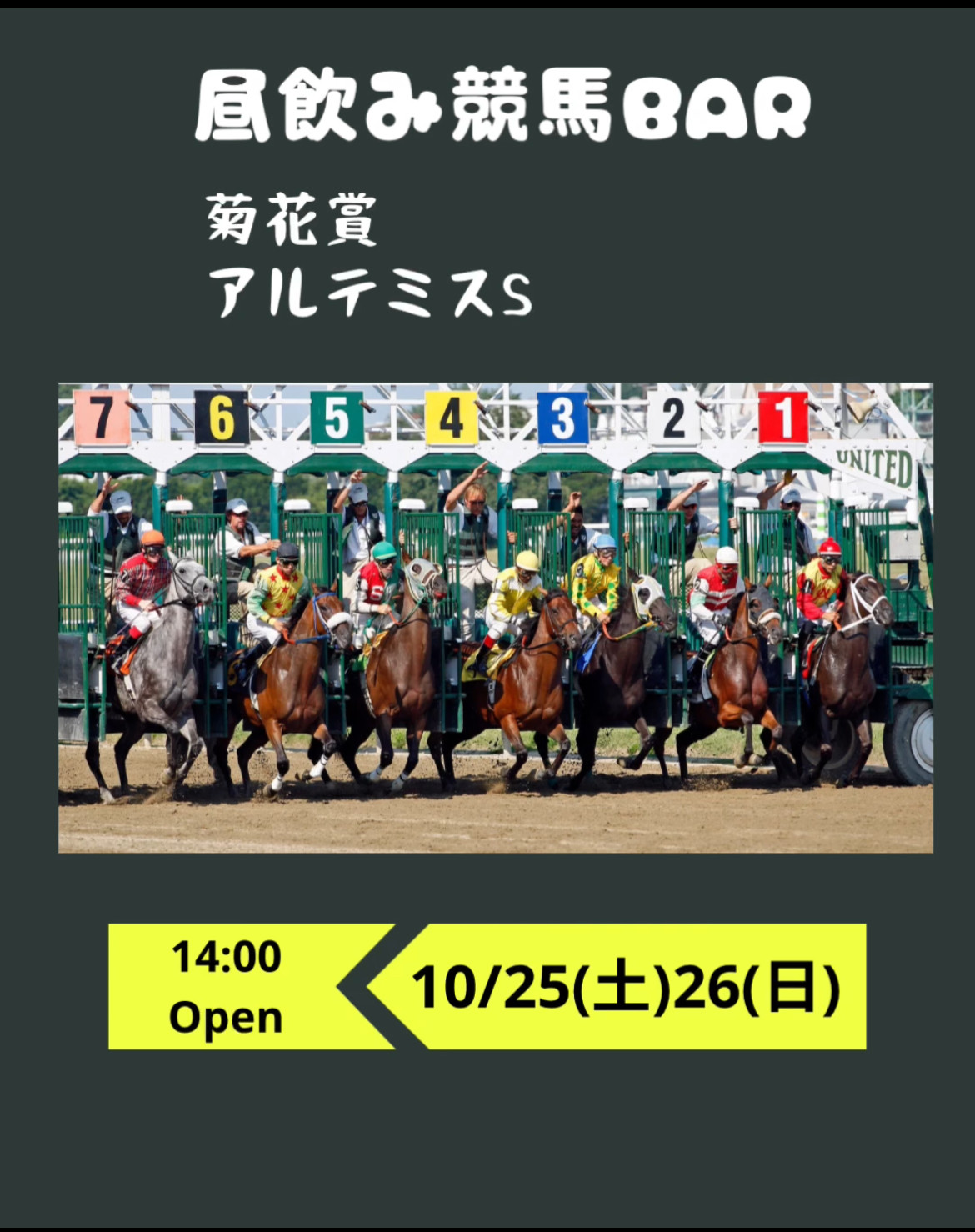 10/25(土)26(日)は14時Openで昼飲み競馬Barの予定です👍