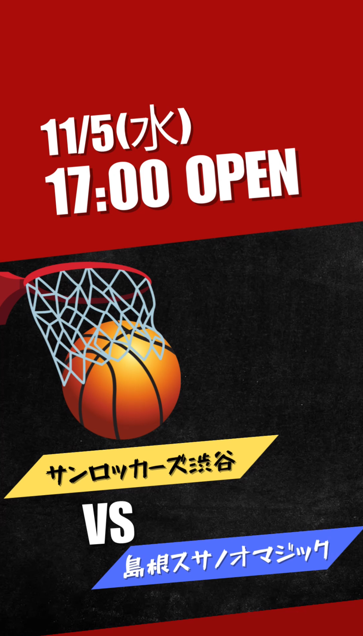 11/5(水)は🏀島根スサノオマジックのSR渋谷戦をLIVEで飲みながら📣